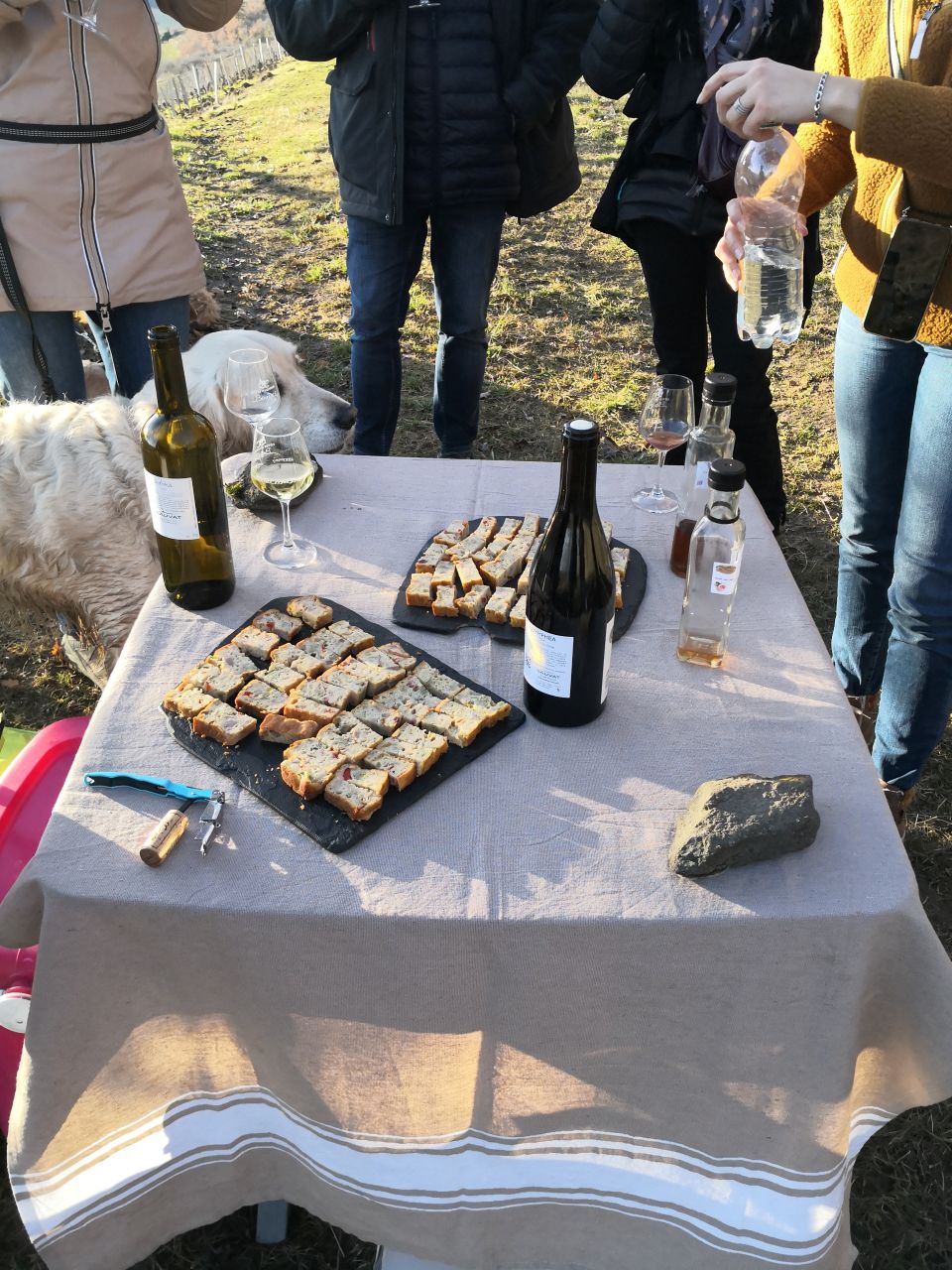 Votre chien peut rester à vos côtés pendant la dégustation, en extérieur ou au caveau selon la météo.