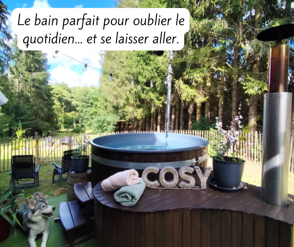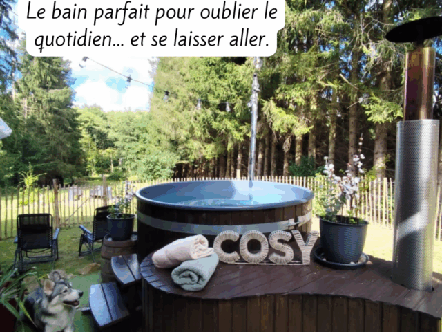 C’est l’endroit parfait pour se détendre après une journée d’aventures dans nos plus beaux coins de balades. À vous les couchages confortables disponibles sur place, à vous goinfrer de friandises ! Et pour vos humains, direction le bain finlandais privatif : un vrai petit bijou qui transforme chaque soirée en moment de pure détente, plongé dans 39 degrés à la belle étoile.