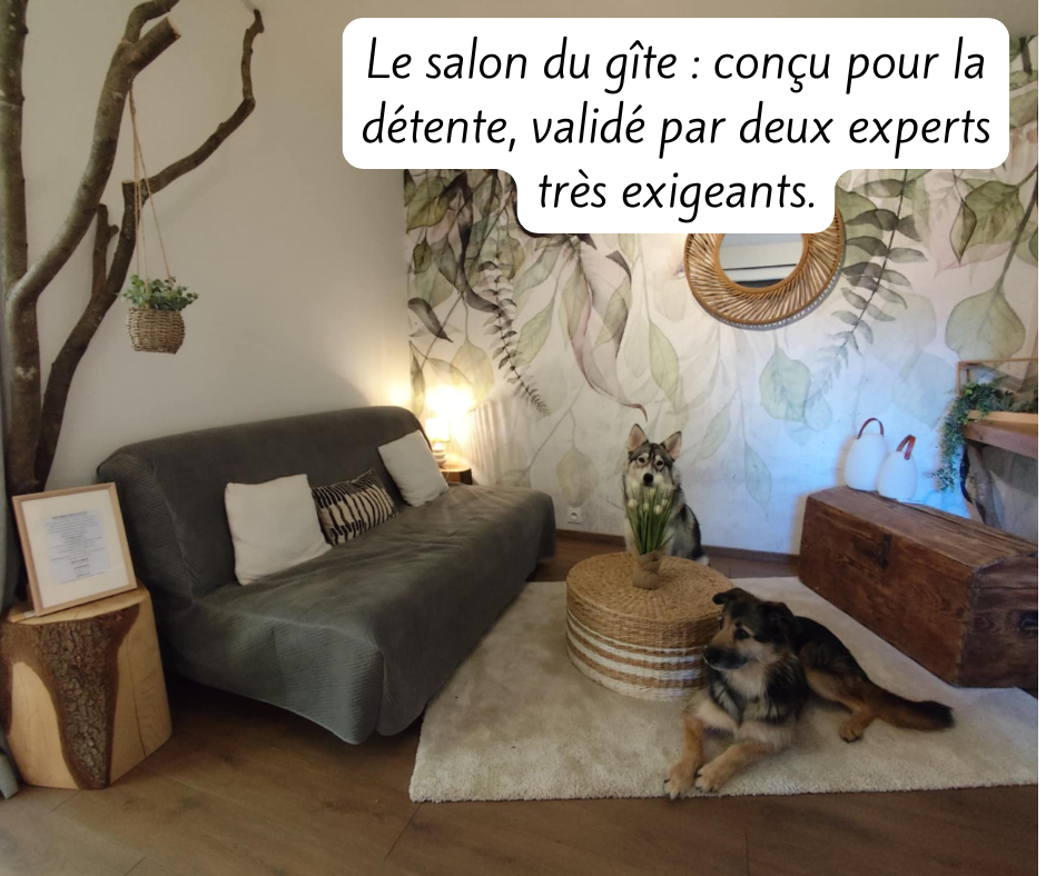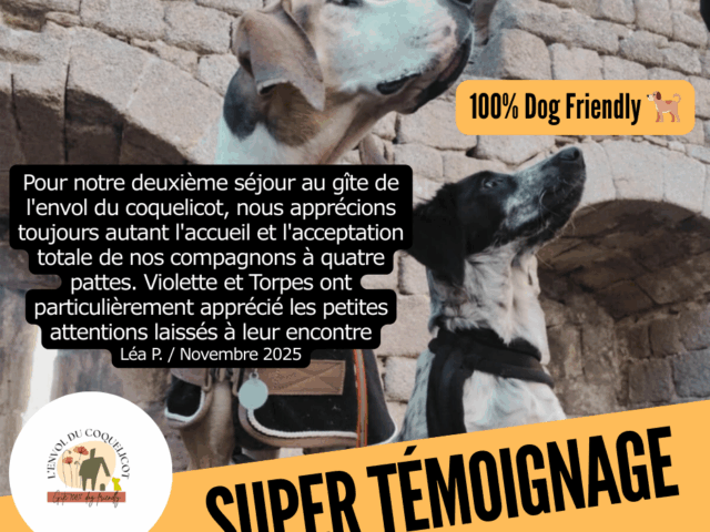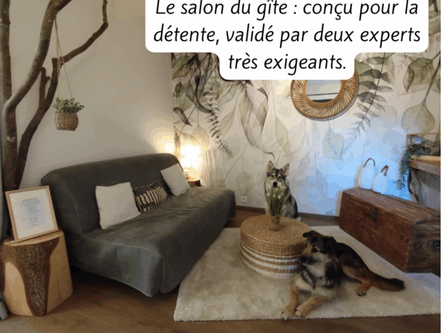 Nous, c’est Shadow et Neha, les chiens mascottes du gîte L’envol du coquelicot. Nous avons validé chaque recoin de ce joli gîte 2 à 4 personnes qui est cosy, familial et authentique. En plus on accepte jusqu’à 5 chiens : Vous n’aurez cas vous serrer un peu pour profitez des 38 m² parfaitement agencé, de plain-pied, donnant sur un jardin clôturé (1m40 de haut minimum).