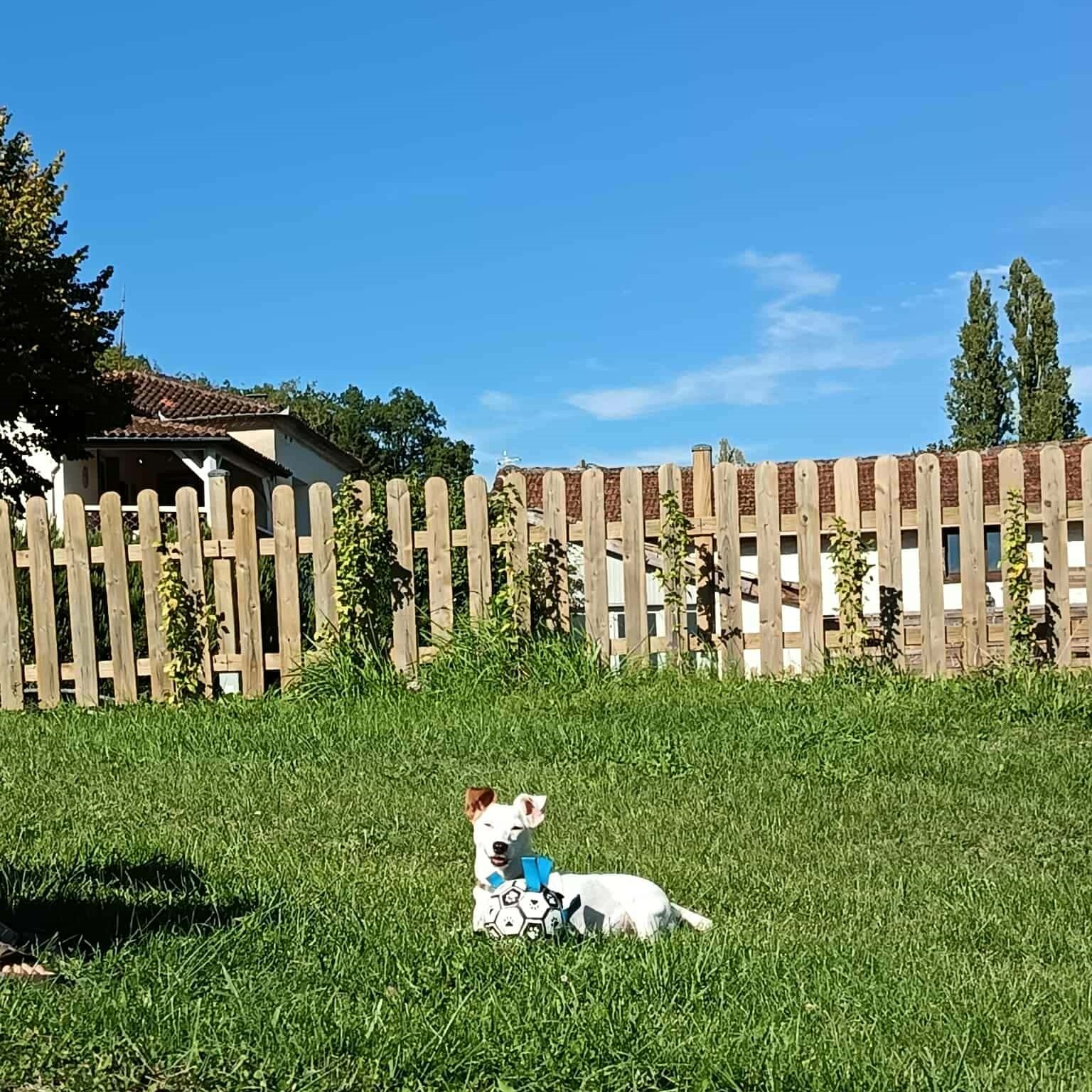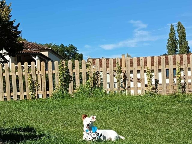 - d’un parc canin clôturé de 400 m² sur le domaine, pensé pour vos chiens : exercice, socialisation, détente, en toute confiance.
