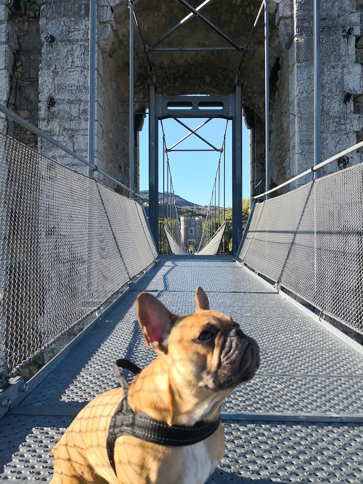 Grande traversée pédestre du département, la Via Ardèche serpente à travers des paysages variés, des causses aux gorges. Une aventure multi-étapes pour les toutouristes sportifs, avec la possibilité d’adapter les journées à l’endurance de votre compagnon. - 04 La passerelle suspendue de Rochemaure